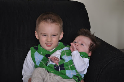 On Monday I took Zachary for his 2 month checkup. He is over 13 lbs already! What a chunker! At least there is no concern that he is thriving:-) We are continuing to thicken his bottle to prevent food from going into his lungs. They will do another video swallow study in 5 weeks. At the moment he is sleeping but unfortunatley that is pretty unpredictable. One day he will go 12-15 hours without anything other than a 15 minute cat nap and hours of screaming, and the next day he will take a 3 hour nap. I believe he is going to work through this HORRIBLE colic stage and be a happy, healthy little boy. In the mean time, we find ways to get through it, after all we have been down this difficult road once before.